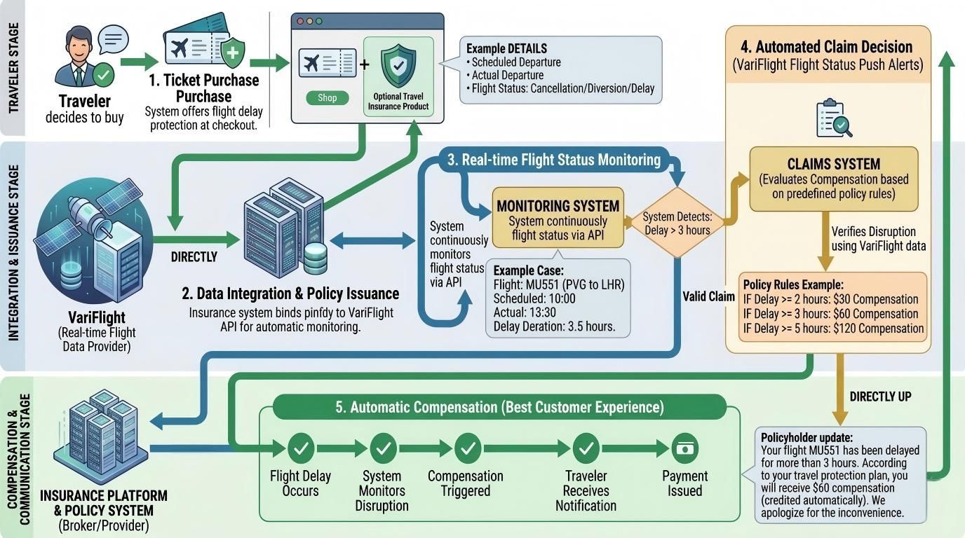 A major online travel agency integrated parametric flight delay insurance into its booking system. Using real-time delay feeds from VariFlight, the insurance product became a popular upsell, especially among business travelers. Customers praised the transparency and speed of claim verification supported by accurate data.